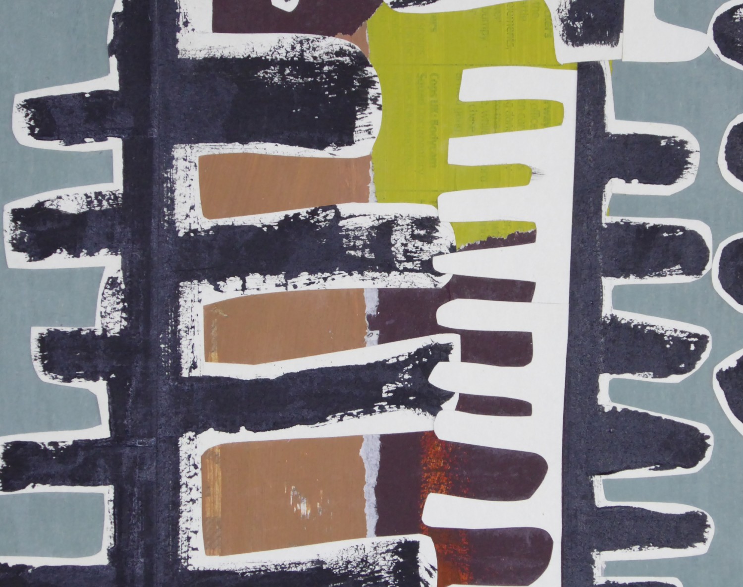 Collage mounted on painted MDF board ready for framing