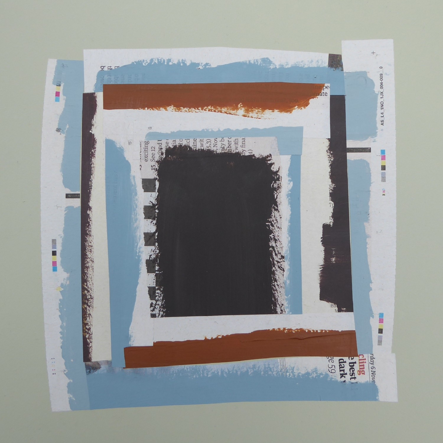 Collage unframed mounted on painted MDF board