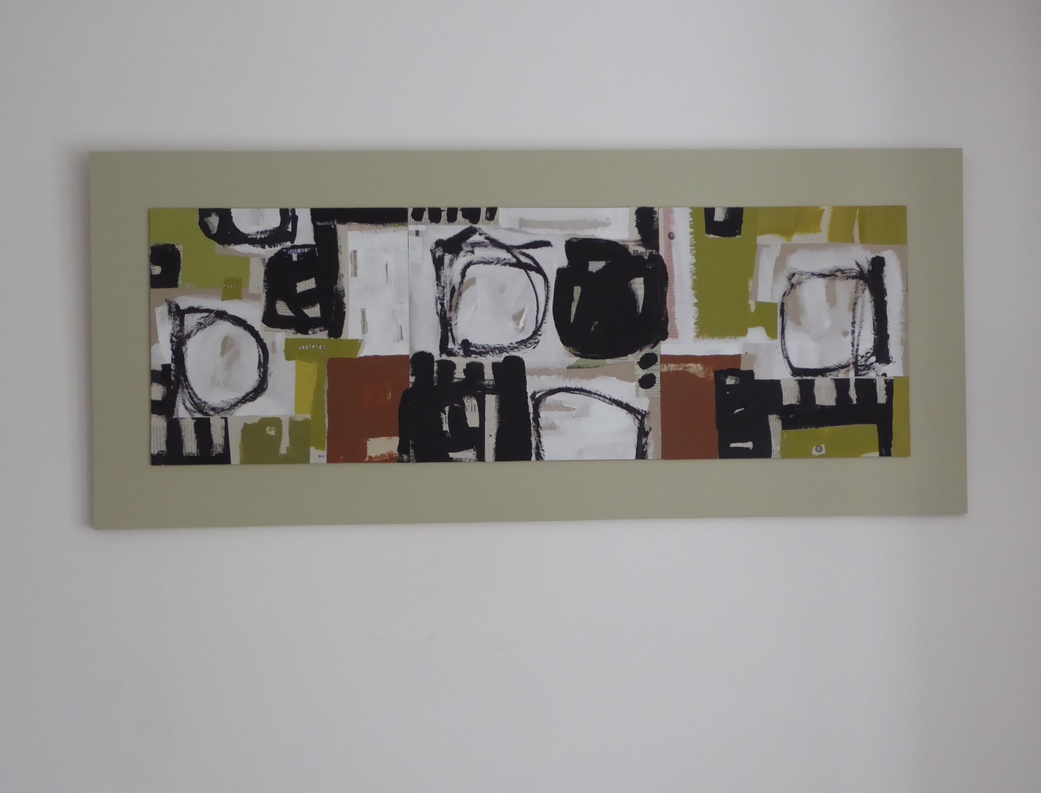 Size 31 x 92cm collage Framed Mounted on 45 x 106cm painted board