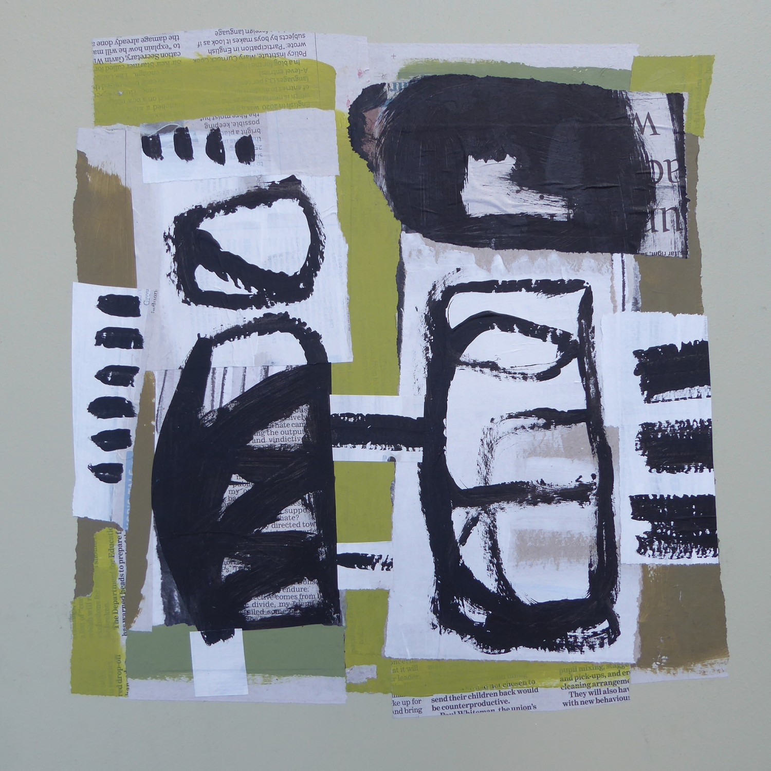 Collage unframed, mounted on painted MDF board
