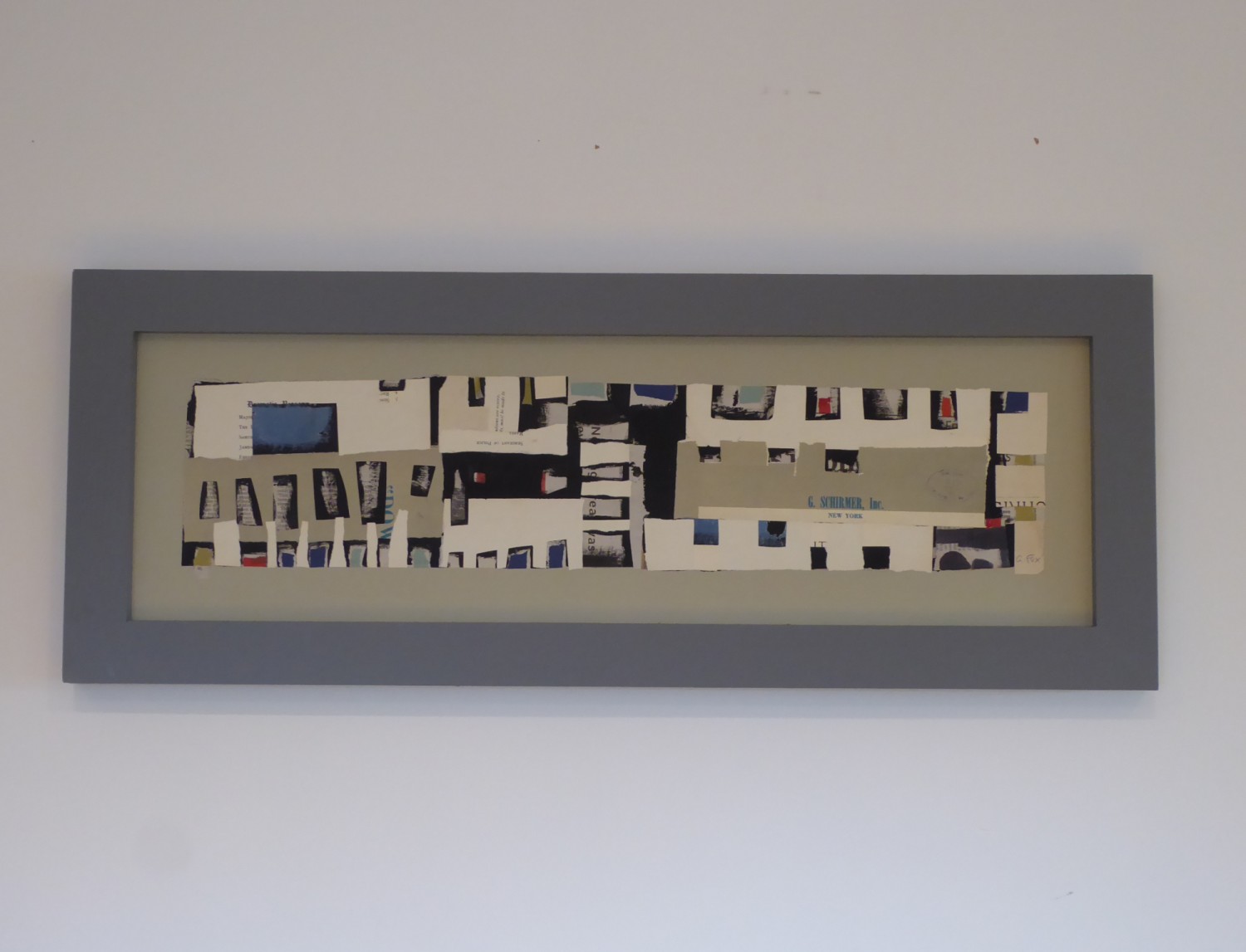 Collage framed in a wooden painted frame No glass or perspex on surface