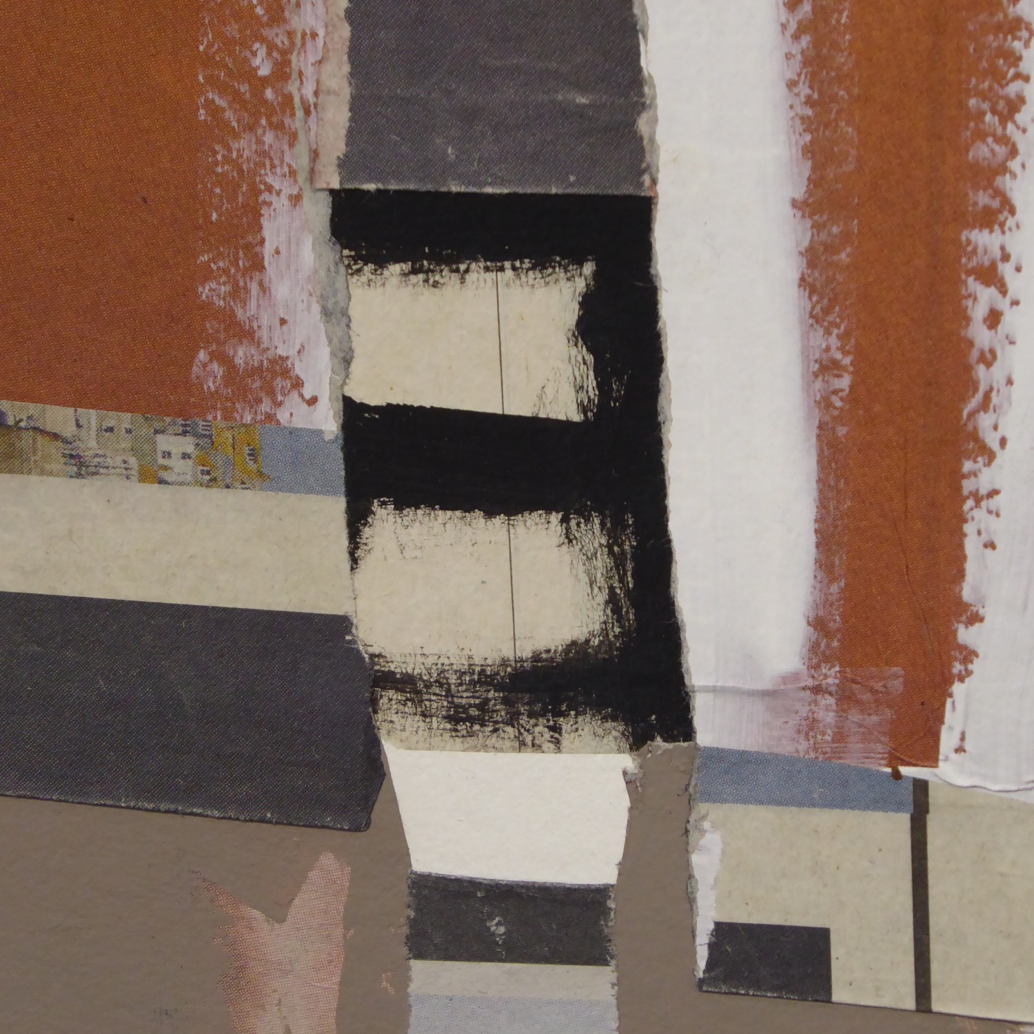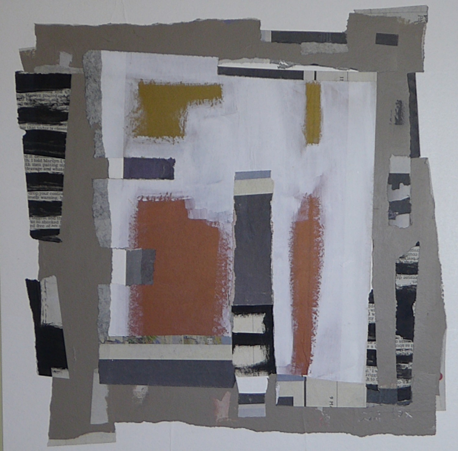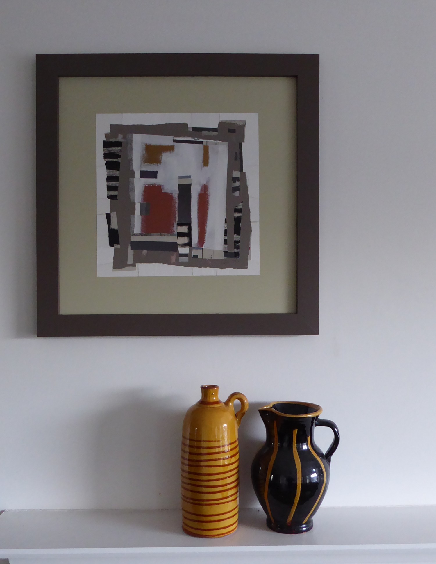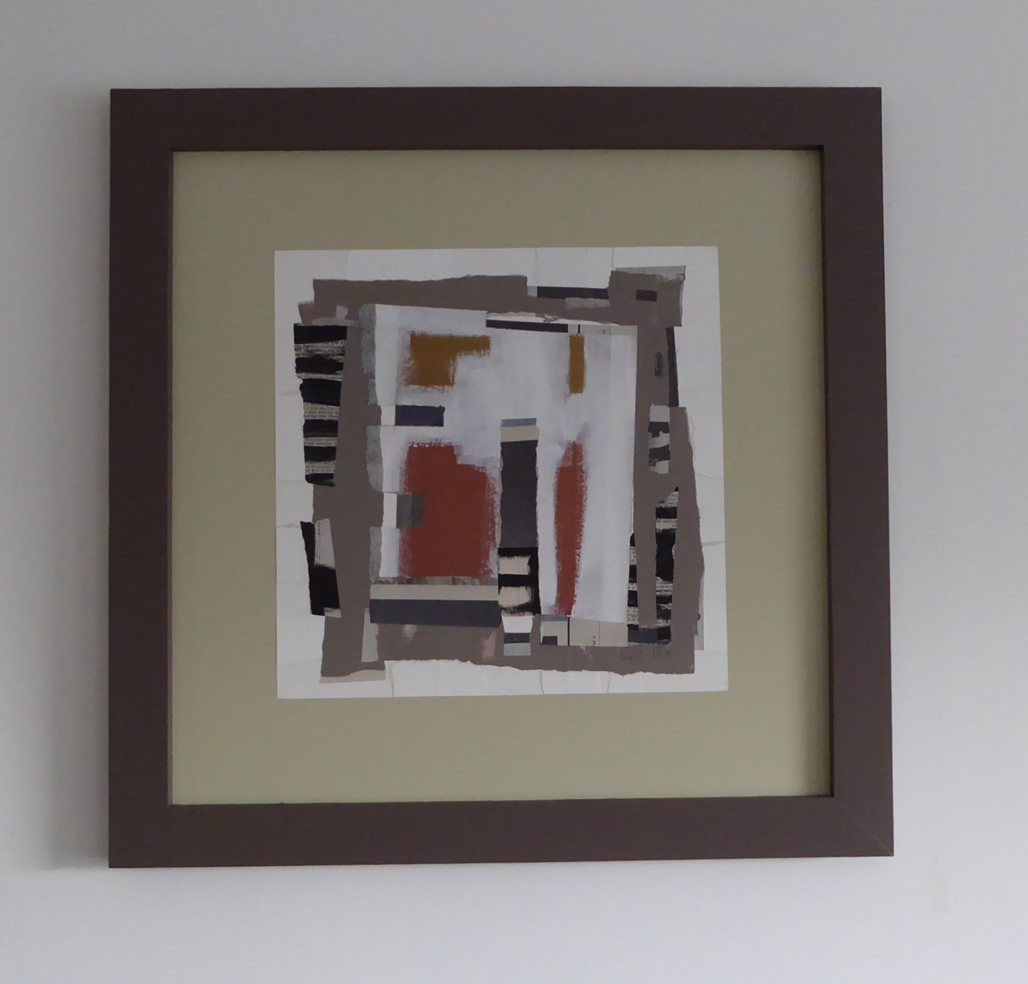 Collage framed in painted wooden frame. No glass or perspex on surface